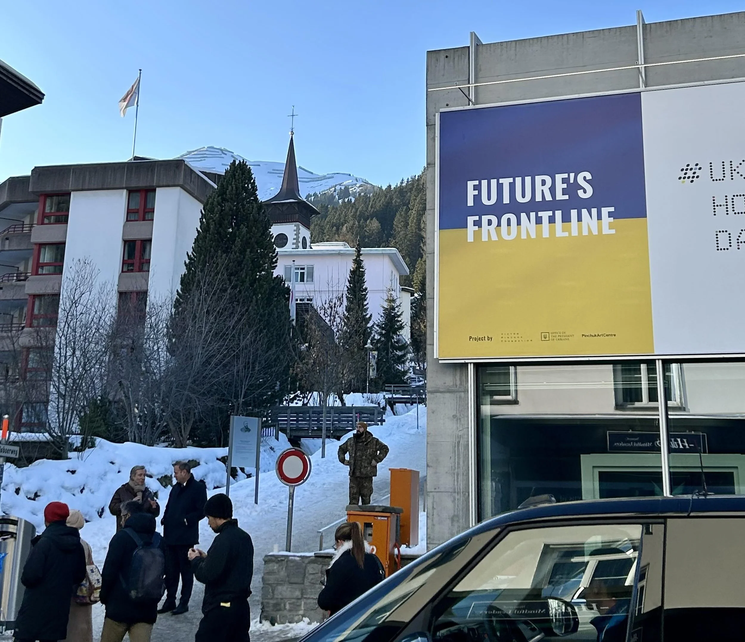When Dialogue Meets the Frontline: Outside the Ukrainian House in Davos, the language of cooperation intersects directly with geopolitical reality. In Davos 2026, “contestation” was no longer abstract: security, sovereignty, and survival shaped conversations as much as growth or innovation. This image captures the limits of dialogue — and its necessity — reminding participants that global cooperation is now negotiated in the shadow of real conflicts, not above them.