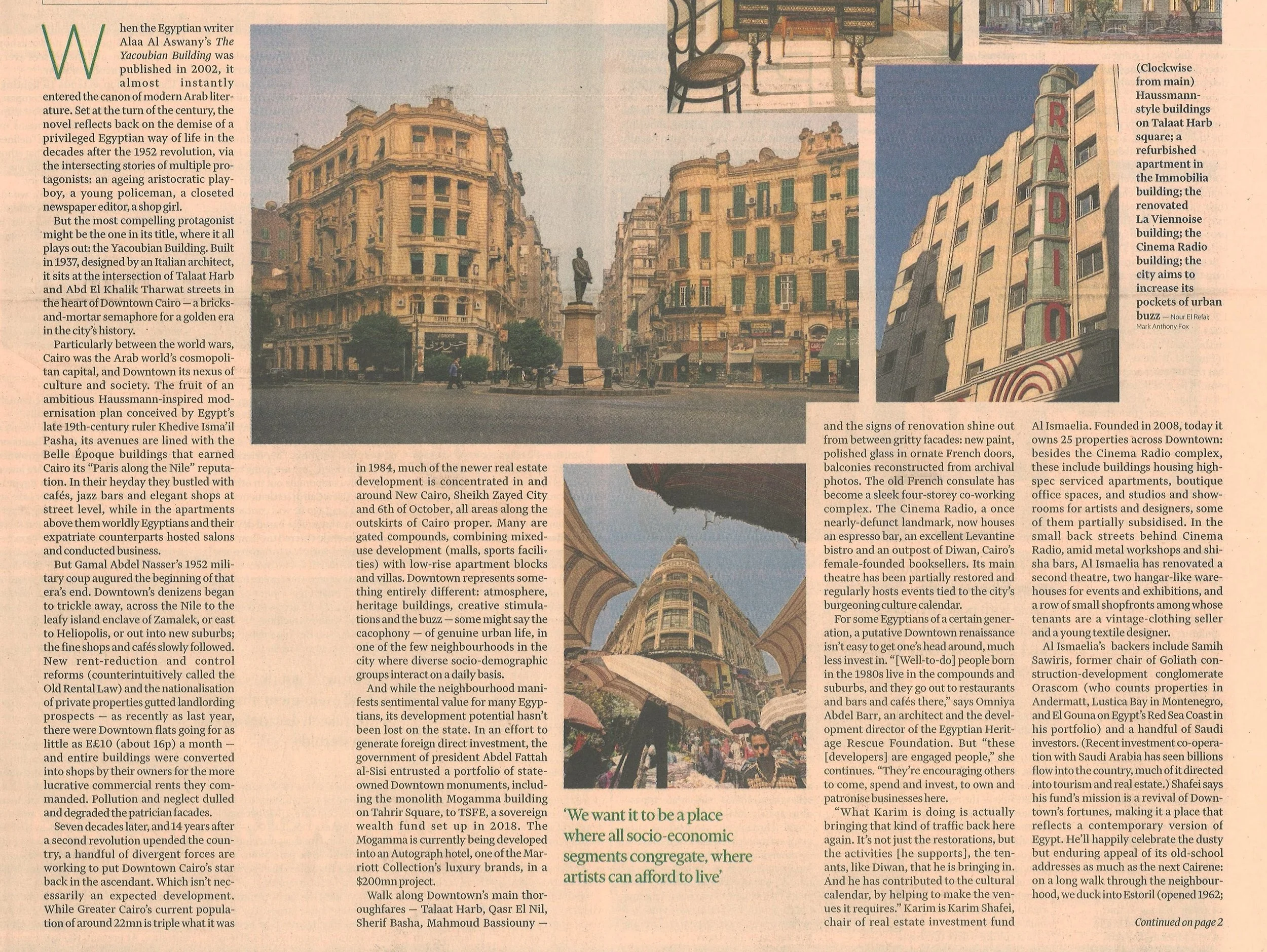 This second full-page spread from the Financial Times’ House & Home feature “Rebirth on the Nile” (FT Weekend, 22–23 February 2025) continues the story of Downtown Cairo’s ambitious regeneration—an effort made possible through OHK’s deep urban strategy and cross-sector collaboration. Here, the article dives deeper into the social and emotional dimensions of the revitalization. As the OHK Arabic messaging to Egyptian stakeholders notes, رؤيتنا أن يبقى هذا الحي مكانًا حيًا ومفتوحًا يعكس التنوع الحقيقي للمجتمع المصري، دون إقصاء أو تهميش، بل بإعادة الاعتبار لما هو قائم ودمجه مع الجديد، بحيث يشعر الجميع بأن لهم مكانًا فيه, translate to English “We envision Downtown as a vibrant space that welcomes everyone—from long-time residents to newcomers, from small shopkeepers to artists and craftspeople. Our goal has always been to keep this district alive and open, reflecting the true diversity of Egyptian society—not through exclusion or erasure, but by honoring what already exists and weaving it into what is yet to come. Downtown should be a place where everyone feels they belong.”