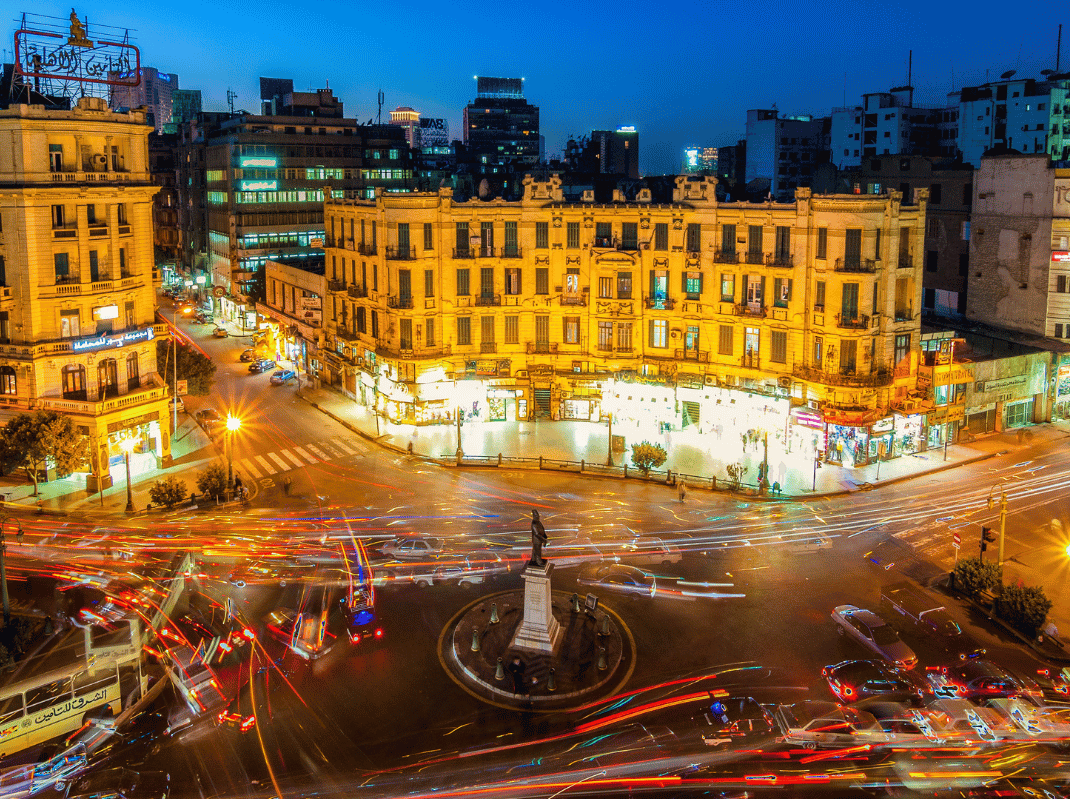 This is Talaat Harb Square (ميدان طلعت حرب) in Downtown Cairo, Egypt. It's one of the city’s most iconic public spaces, known for its distinctive roundabout centered around the statue of Talaat Harb Pasha, the founder of Banque Misr and a key figure in Egypt’s modern economic history. The square is surrounded by Haussmann-style buildings, many dating back to the early 20th century, reflecting Cairo’s once-declared ambition to be the “Paris on the Nile.” It’s a critical urban node, linking major arteries such as Talaat Harb Street, Qasr El-Nil, and Sherif Street, and has long been a focal point. Talaat Harb Square was one of the first pilot sites selected in Downtown Cairo’s broader urban regeneration effort—an initiative aimed at demonstrating how strategic intervention, even with modest resources, could meaningfully transform public space and restore architectural dignity. With its central location and iconic status, the square served as an ideal starting point for testing facade restoration strategies, signage control, and street-level activation.