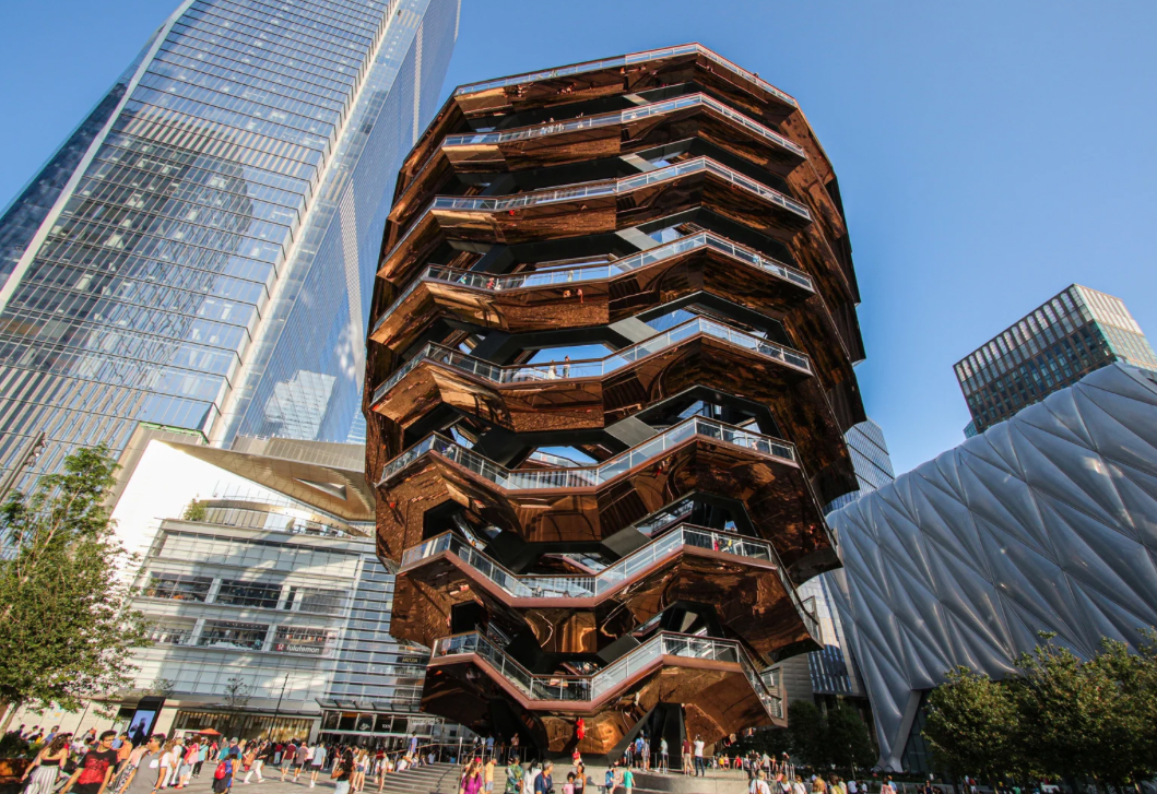 Hudson Yards redefines the west side of Manhattan—a new vertical city born from rail tracks and ambition. It is the largest private real estate development in U.S. history—a bold intervention atop Manhattan’s once-overlooked rail yards. Envisioned by Related Companies and Oxford Properties, the 28-acre site has transformed into a high-density cluster of glass towers, public art, and retail destinations, combining cutting-edge architecture with infrastructural ingenuity. Anchored by 30 and 10 Hudson Yards, the district integrates office headquarters, luxury condos, a high-end shopping center, and the immersive Edge observation deck. The Vessel, a honeycomb-like public structure, serves as an architectural spectacle and social media magnet, while the Shed—its cultural center—hosts rotating exhibitions and performances, adding civic depth to the commercial landscape. What distinguishes Hudson Yards is its seamless layering of real estate, culture, and connectivity. It was enabled by one of the most complex engineering feats in New York’s history: constructing an entire neighborhood above active train tracks, supported by a custom-built platform. Sustainability is woven into the project through advanced energy systems, stormwater capture, and smart infrastructure. Hudson Yards isn't just a new skyline feature—it’s a paradigm shift in how American cities approach urban infill, blending luxury and infrastructure to create a hyper-programmed, privatized urban core engineered for 21st-century life.