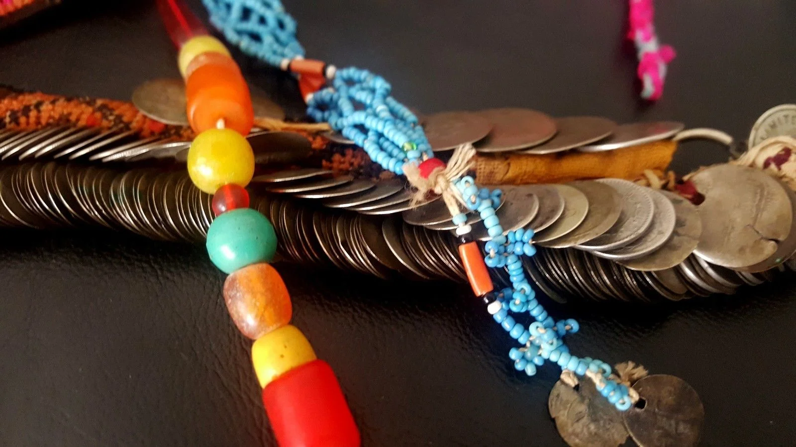 Egypt’s Bedouin adornments are iconic for their functional, wealth-saving, and symbolic values. The antique veils of the Sinai Peninsula are extremely rare and feature traditional motifs, silver coins, and eclectic artistic flourishes. The one shown here, currently in the collection of the Ethnological Museum of Berlin, dates from the late 19th century. Photo © OHK Consultants.