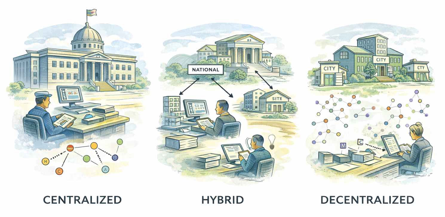 A final and often decisive way to classify mass valuation systems is by their governance and institutional design. Governance determines where authority over valuation resides, how decisions are made and approved, and how accountability is enforced. Unlike methodology or automation, which focus on how values are calculated, governance addresses how valuation functions as a public institution. It shapes legitimacy, legal defensibility, and long-term sustainability, and often determines whether technically sound systems succeed or fail in practice.